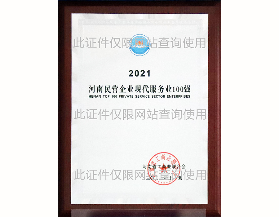 河南省民營企業(yè)現(xiàn)代服務業(yè)100強