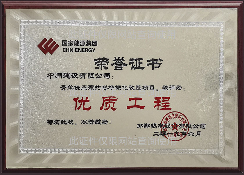 優質工程證書